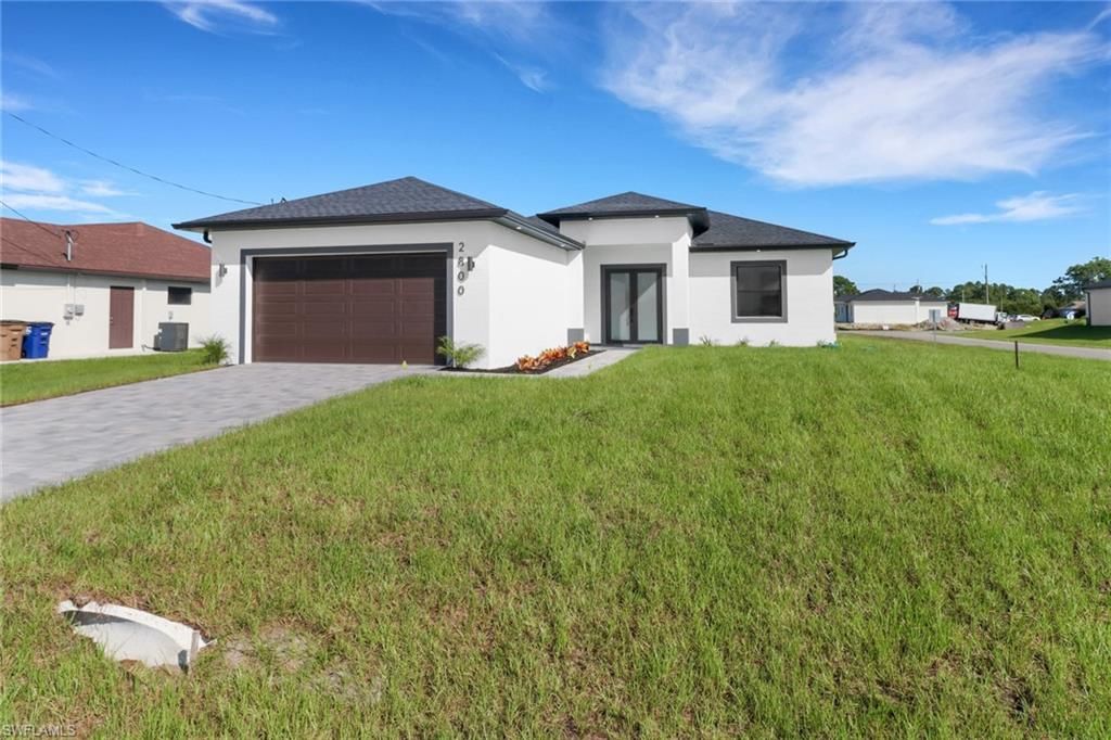 Beautiful NEW CONSTRUCTION 2024!!! is located in a great part of Lehigh Acres. The house count with three bedrooms , two bathrooms a big office that can be use as a 4 bedroom. Modern living , dining space with beautiful tile trough the entire house. The kitchen have quartz giving you the perfect modern and cozy atmosphere. Stanley steel appliances , and a bonus new Washer and Dryer. Close to I 75 Supper easy access to Publix , Walmart , schools , banks and pharmacies !!!